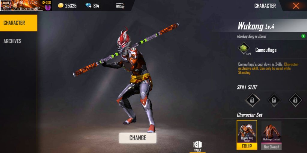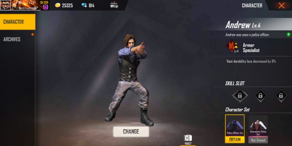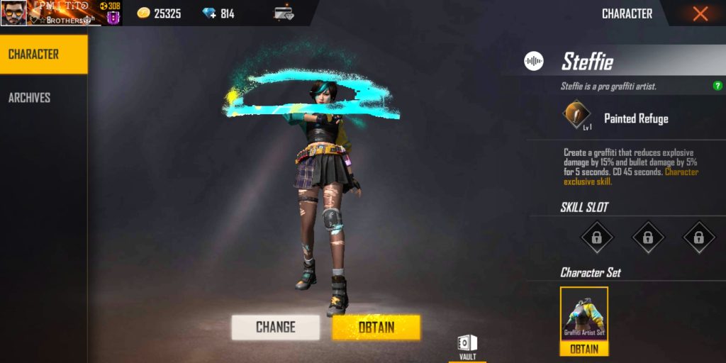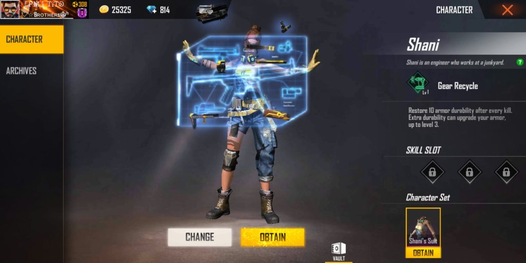 این کاراکتر میتونه با استفاده از از قارچ تا ۱۲ درصد از آسیب تفنگ دشمنان را کم کند (میتونید از این کاراکتر گروهی استفاده کنید )